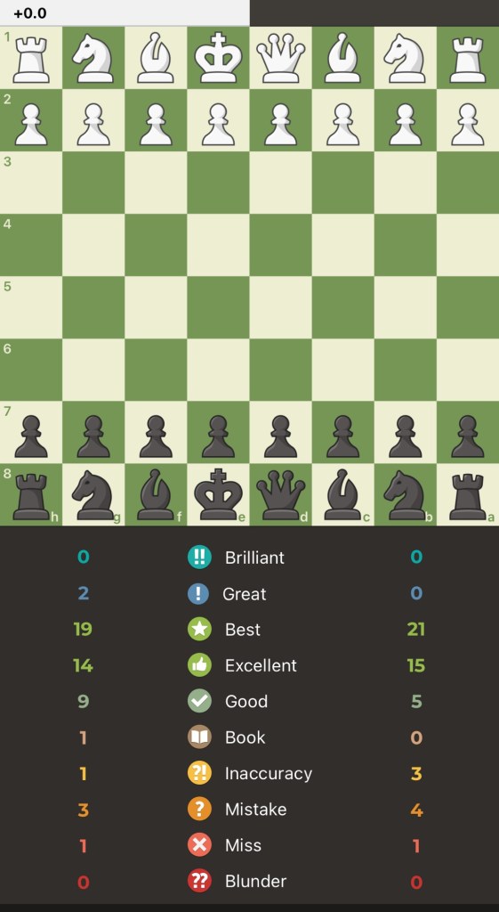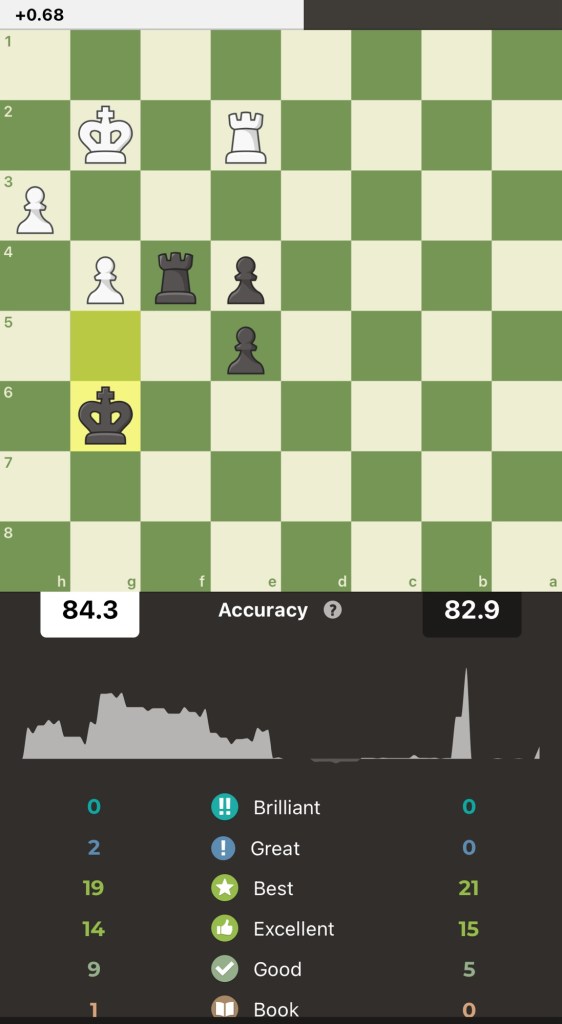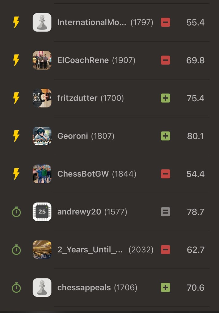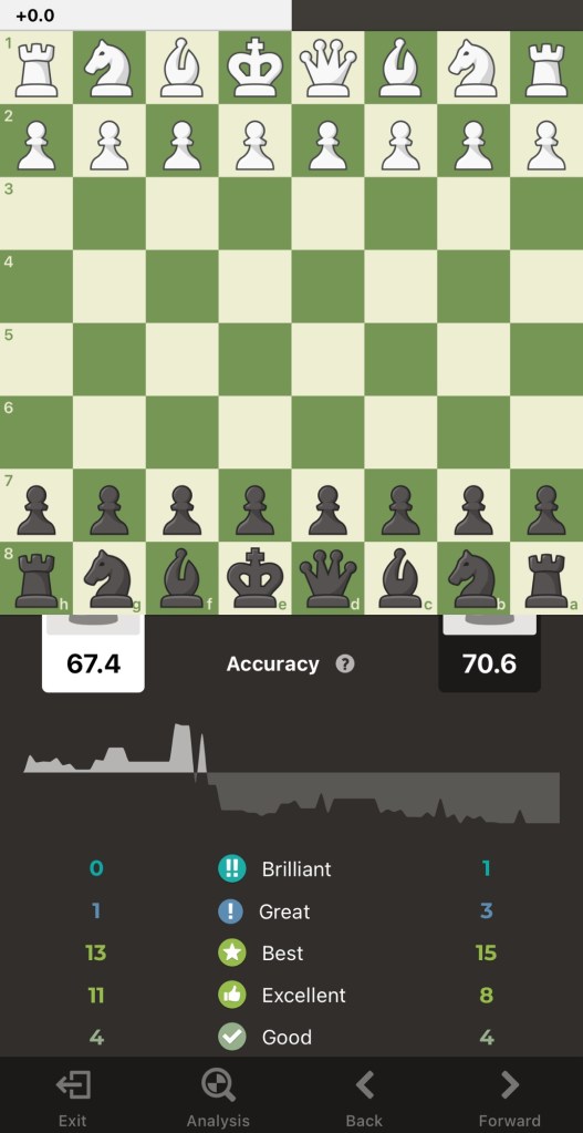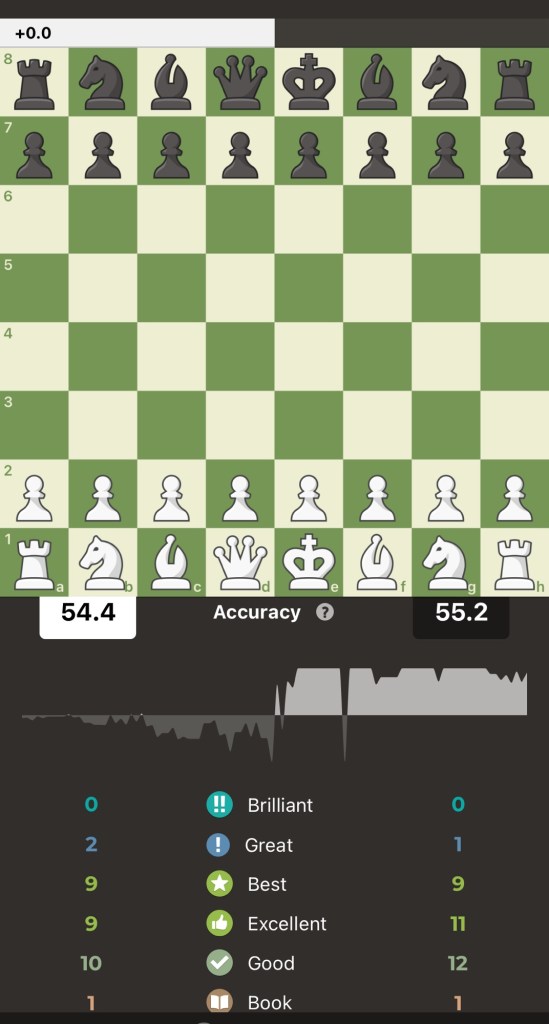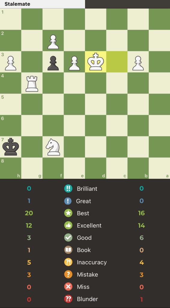 Here’s an accuracy snapshot from the engines at chess(dot)com— valuable mistakes were made in all the games — this is why post game review is the best training tool — just do it!