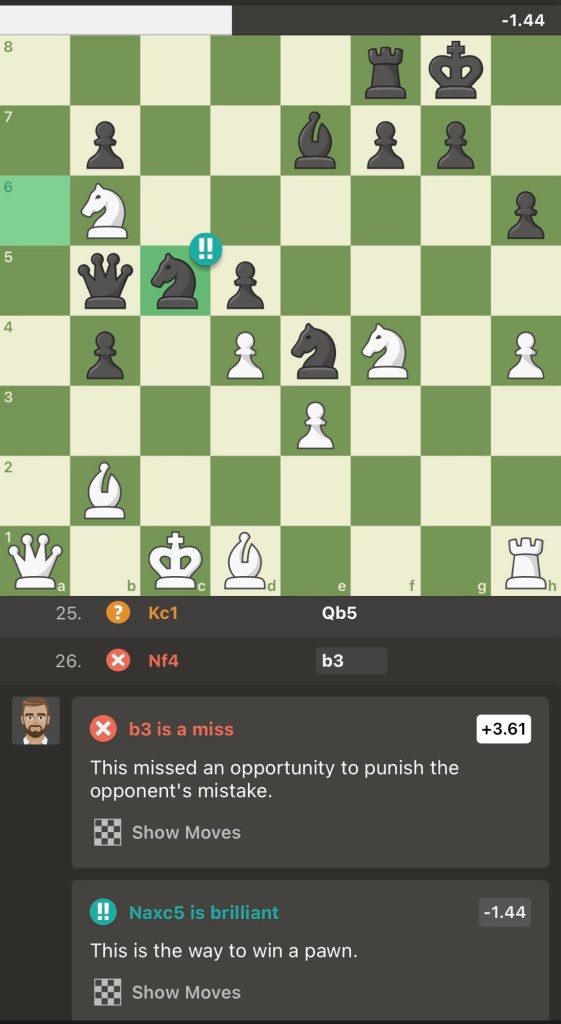 Game 4: Another missed win by Coach Chad, but there sure were fireworks — tough — Check out this #chess game: TCZ_CoachChad vs 2_Years_Until_Titled – https://www.chess.com/live/game/109984883837