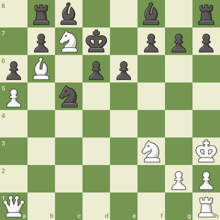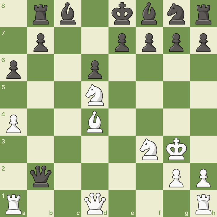1rb2b1r/1pNk1ppp/pB1pp3/P1n5/8/5N1K/6PP/Q6R w – – 3 21